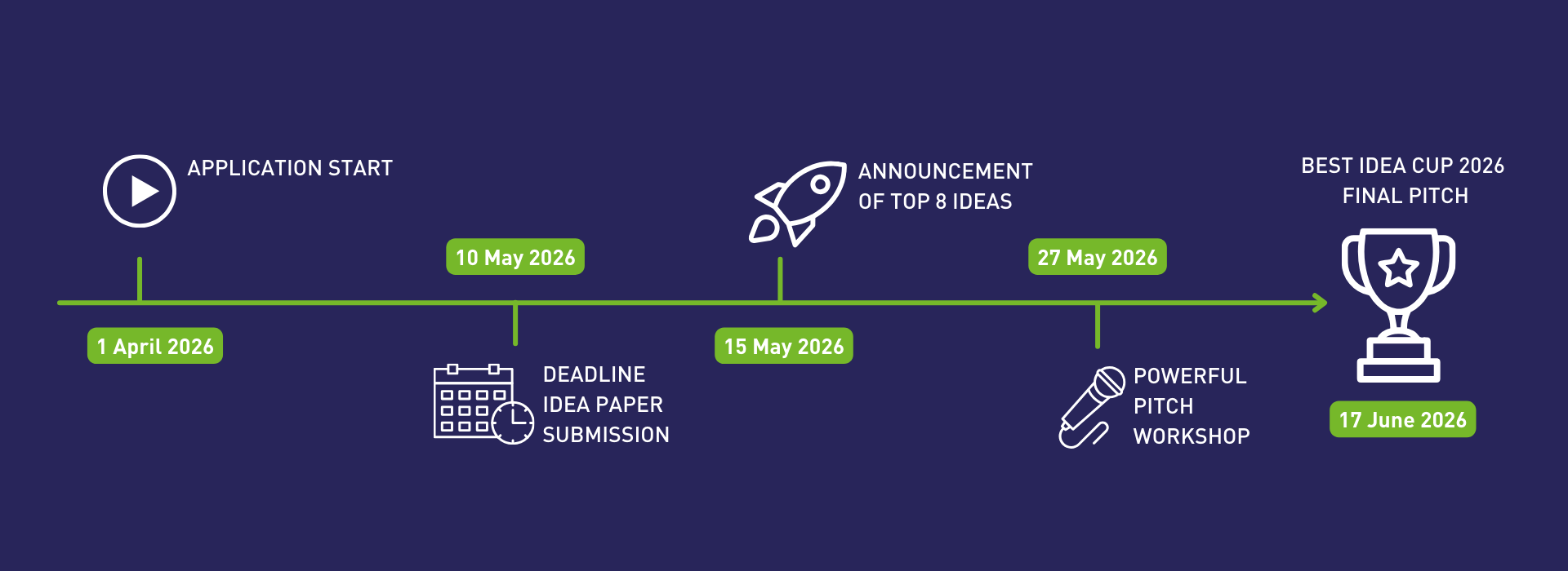 On 27 May 2026, all 8 finalists will join a Powerful Pitch Workshop at Campus Kleve to prepare their final pitch, with a focus on clear pitching and strong visual design.